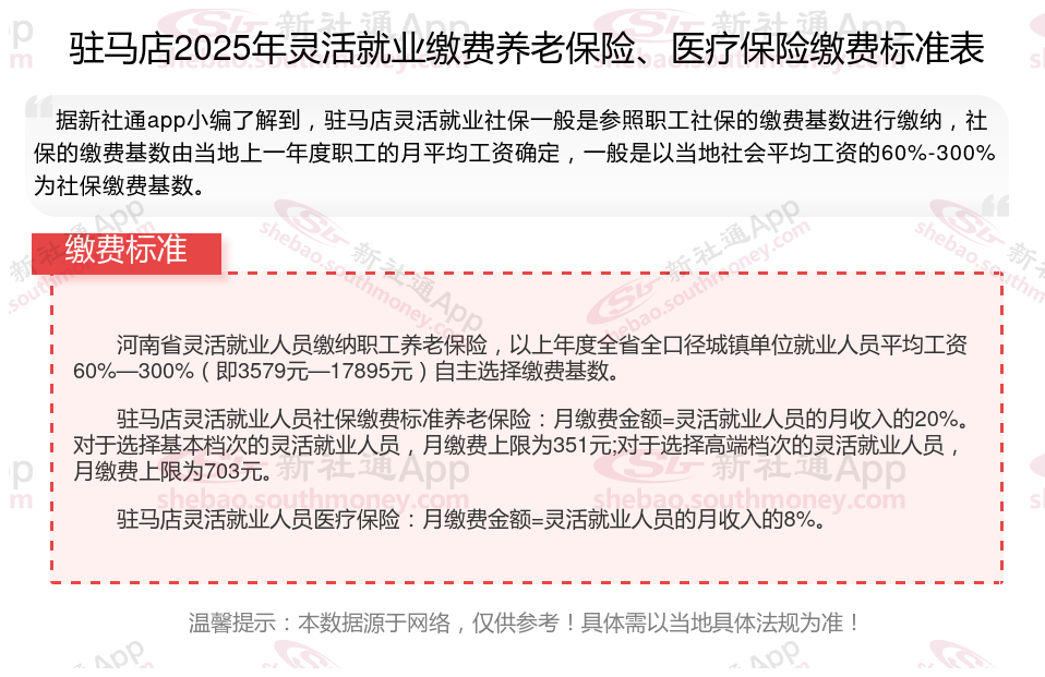 驻马店灵活就业人员基本养老保险缴费基数暂按不低于3579元;