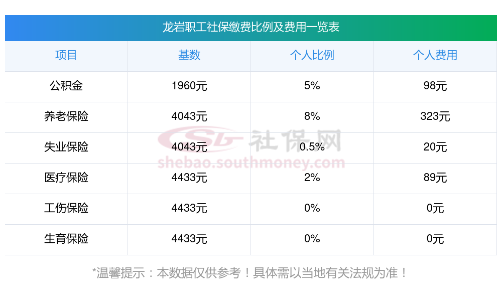 一、龙岩交社保一个月多少钱?2025年龙岩社保缴费比例、明细