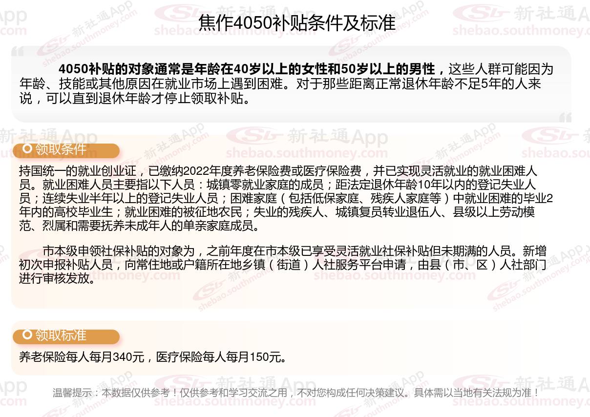 二、焦作4050社保补贴标准及条件2025年最新消息