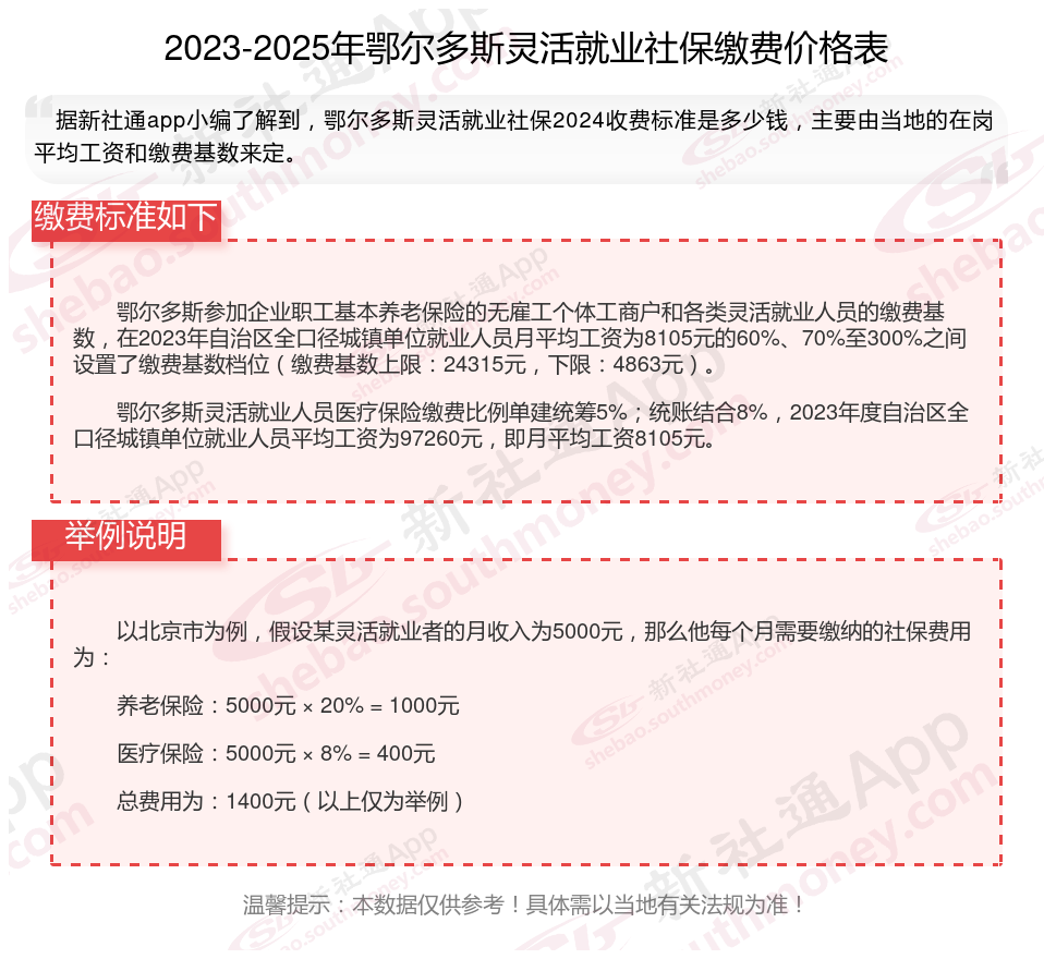 那么,鄂尔多斯灵活就业人员社保缴费标准2024-2025最新来了,交社保有什么好处?根据新社通app-社保缴费查询工具提供的2025社保缴费标准详情数据: