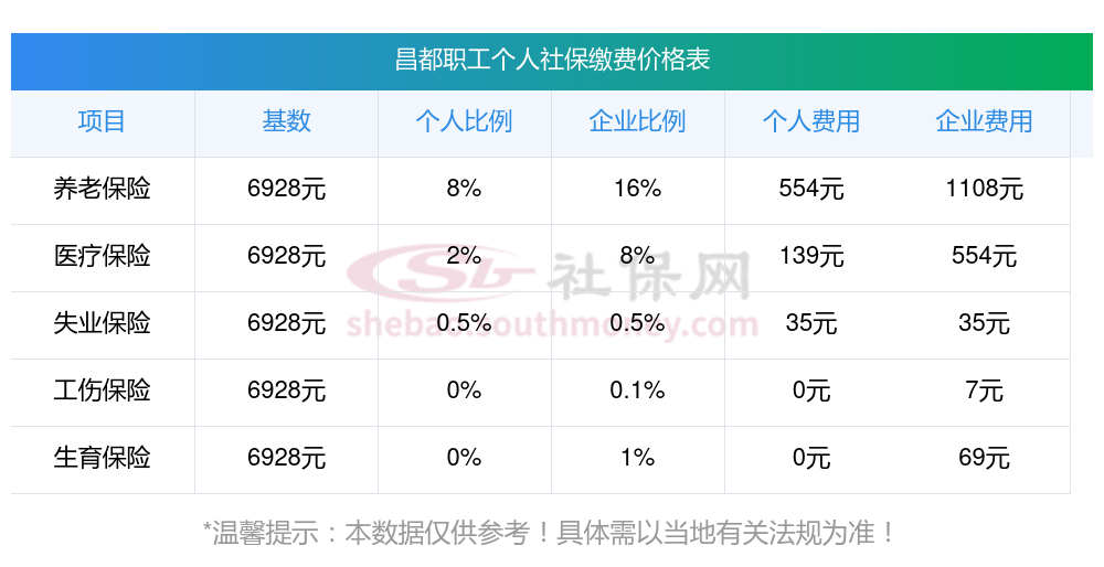 社保卡一年交多少钱?下表是2025年昌都社保费用明细参考,新社通app-社保缴费查询工具提供的最新数据如下: