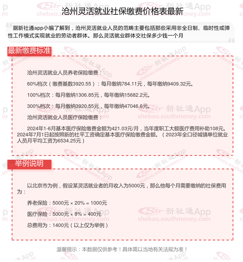 据新社通app数据显示,沧州灵活就业养老保险缴费基数2024-2025年最新标准如下: