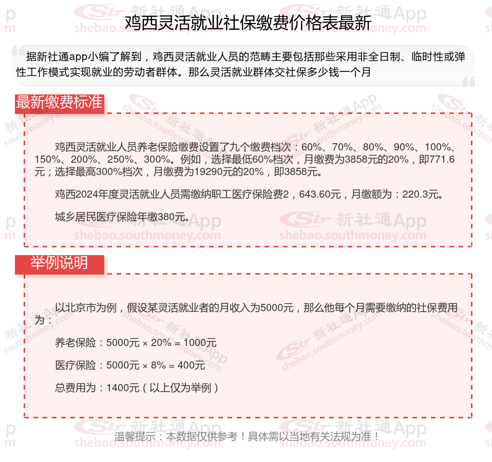 以上就是鸡西灵活就业社保缴费的全部内容,数据及内容供参考!希望对你有帮助,欢迎关注新社通解锁更多社保专业资讯。