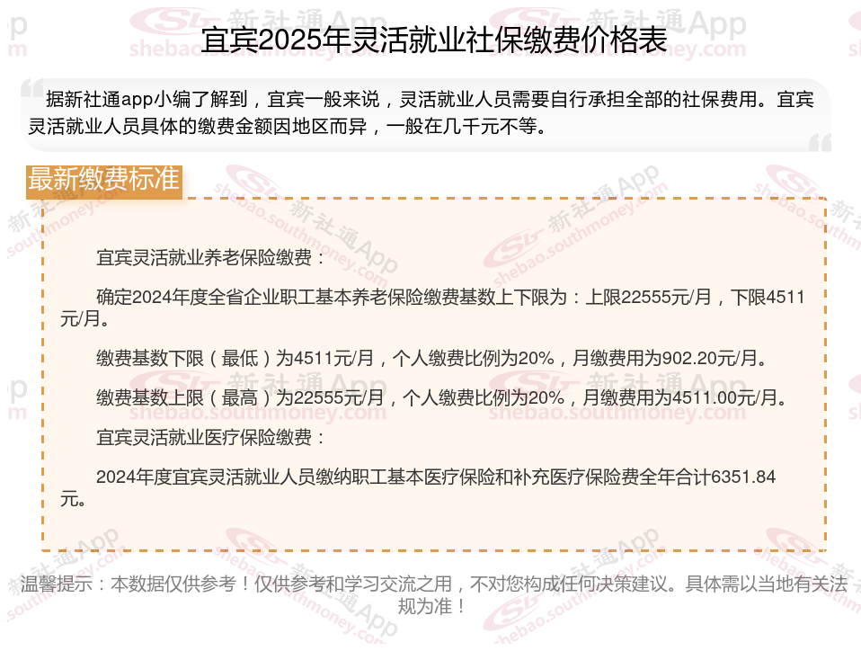 一、宜宾2024-2025年个体及灵活就业人员社保养老保险缴费标准(宜宾自费社保价格表)