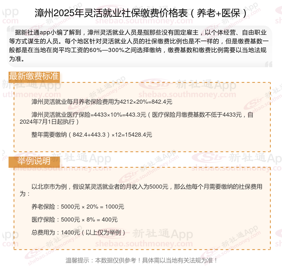 二、2025年漳州灵活就业社保缴费基数、比例最新消息