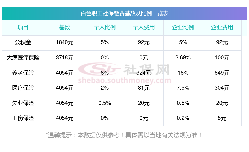 2025年社保多少钱一个月?下表是2024-2025年百色社保费用明细参考,新社通app-社保缴费查询工具提供的最新数据如下: