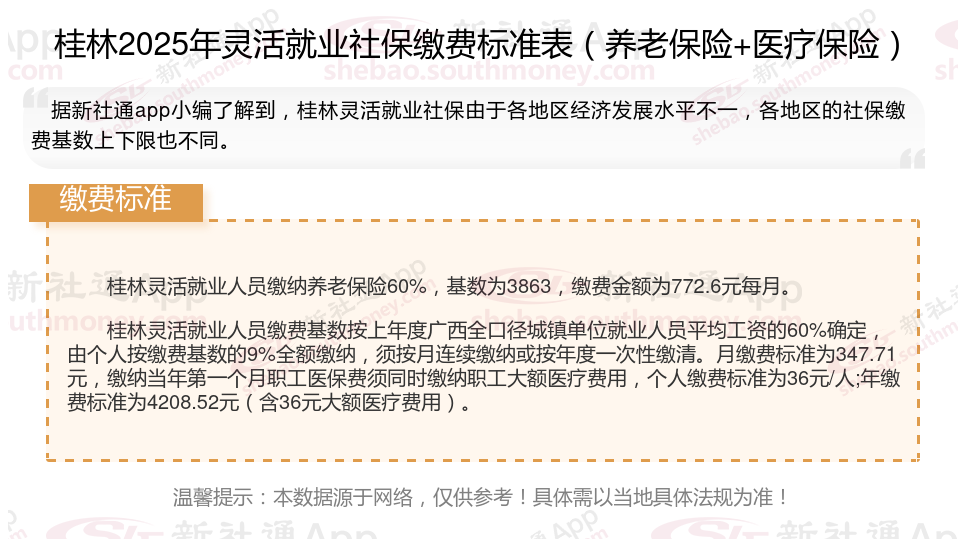 2025年灵活就业社保最低要交多少钱?灵活就业人员社保缴费最新明细来了~根据新社通app-社保缴费查询工具提供的2025社保缴费标准详情数据: