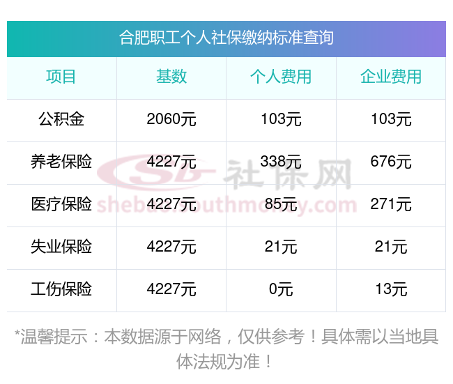 合肥缴费社保比例一览 社保公司和个人各交多少?下表是2024-2025年合肥社保费用明细参考,新社通app-社保缴费查询工具提供的最新数据如下:
