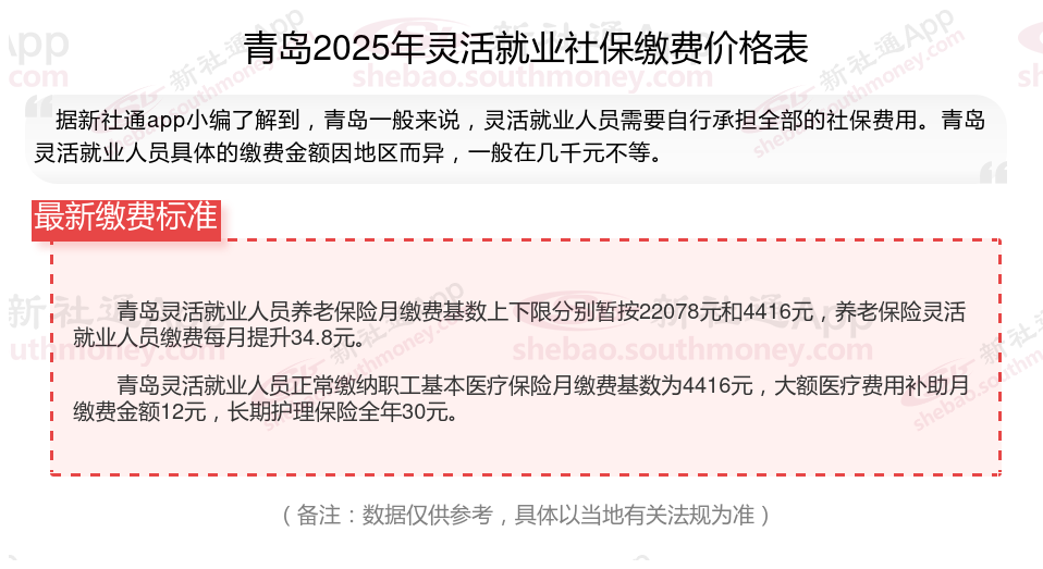 据新社通app数据显示,青岛灵活就业养老保险缴费基数2024-2025年最新标准如下: