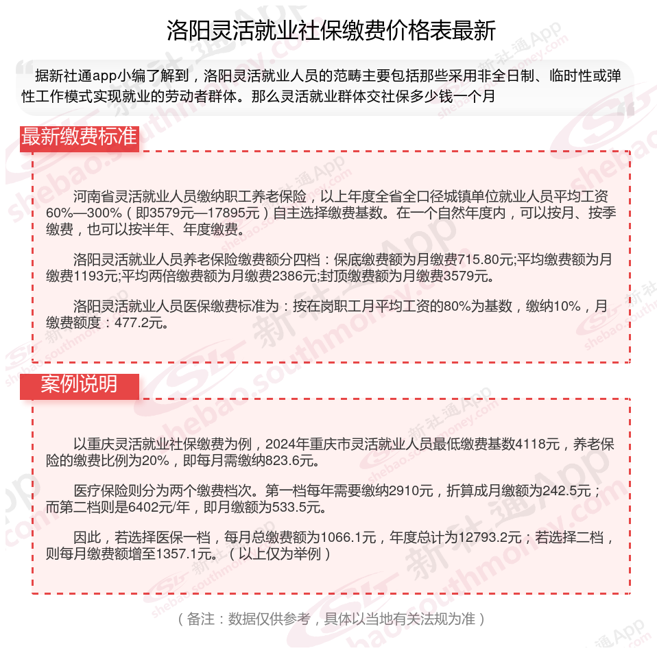 据新社通app数据显示,洛阳灵活就业养老缴费基数明细如下: