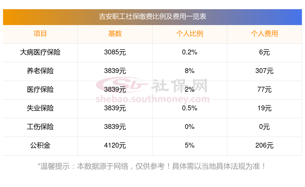 吉安缴费社保比例一览 社保公司和个人各交多少?下表是2024-2025年吉安社保费用明细参考,新社通app-社保缴费查询工具提供的最新数据如下:
