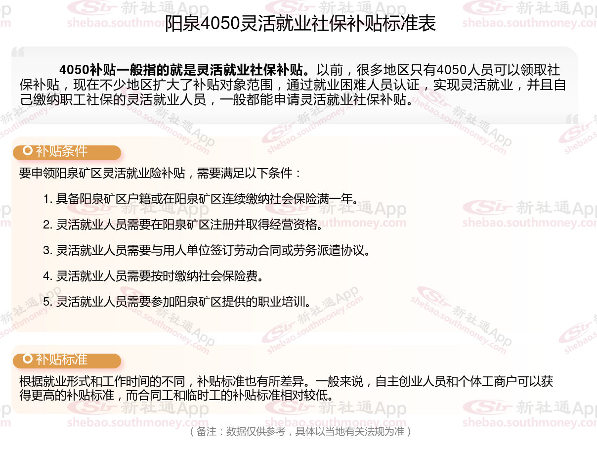 以上就是阳泉4050灵活就业困难人员社保补贴的相关内容,欢迎关注新社通/下载新社通APP了解更多五险一金专业资讯。