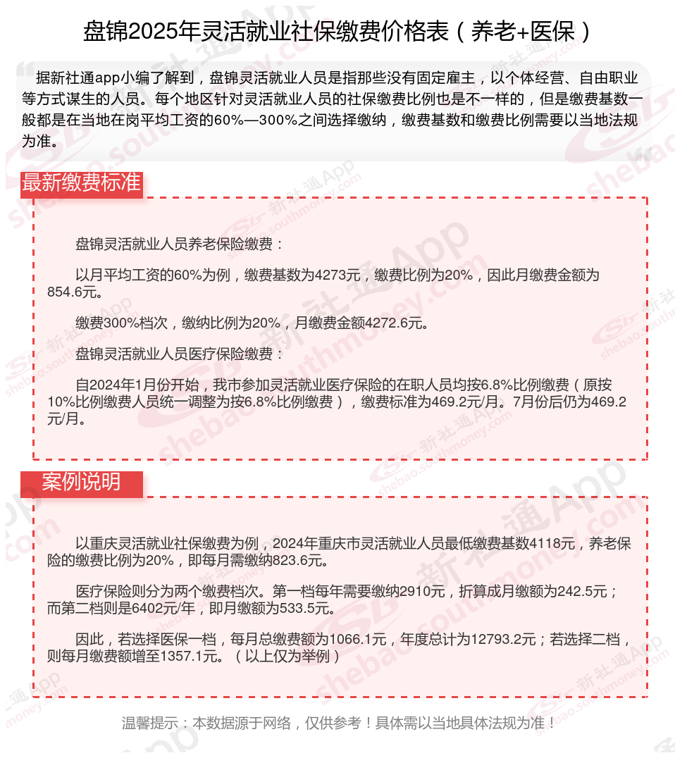一、2025年盘锦灵活就业社保缴费标准表 盘锦灵活就业社保多少钱一个月?