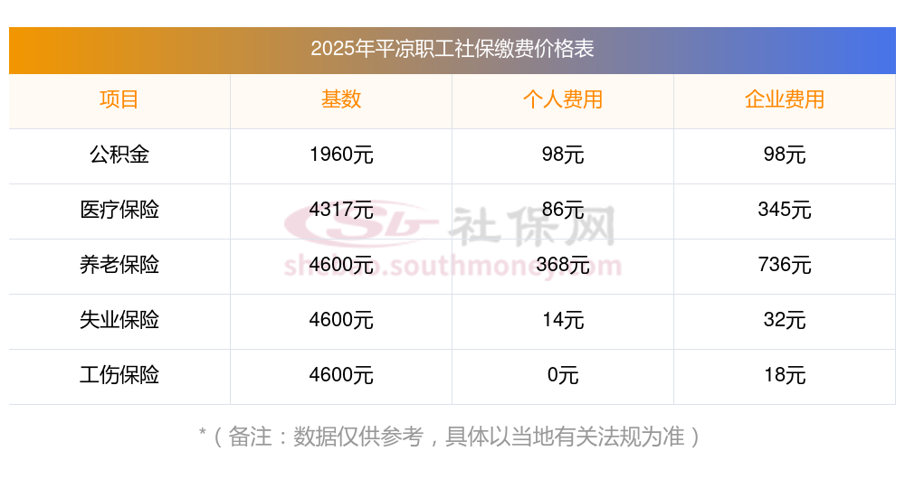 【社保缴多少钱】2025年度最新社保缴费基数是多少?社保缴费基数,就是社保缴纳的缴费标准。接下来随社保君了解一下2025年平凉社保交多少钱,2025年平凉社保缴费标准的详细内容。