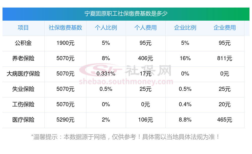 宁夏固原职工社保计算公式