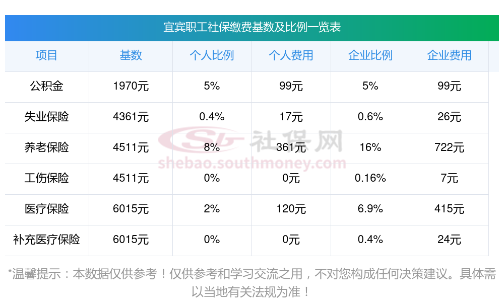 四川社保个人怎么交费?四川社保个人交多少钱?下表是2024-2025年宜宾社保费用明细参考,新社通app-社保缴费查询工具提供的最新数据如下: