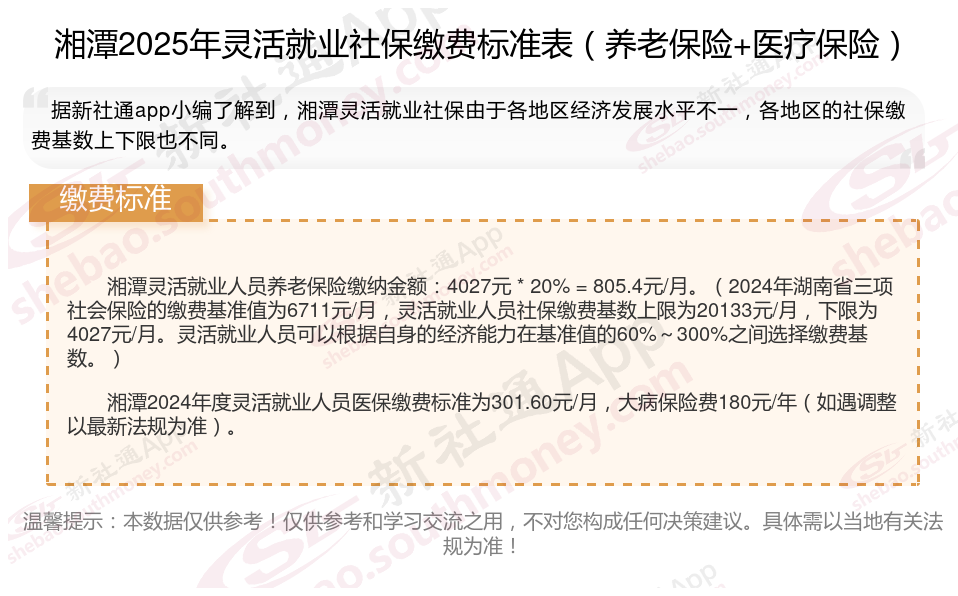 以上就是湘潭灵活就业社保缴费的全部内容,数据及内容供参考!希望对你有帮助,欢迎关注新社通app解锁更多社保专业资讯。