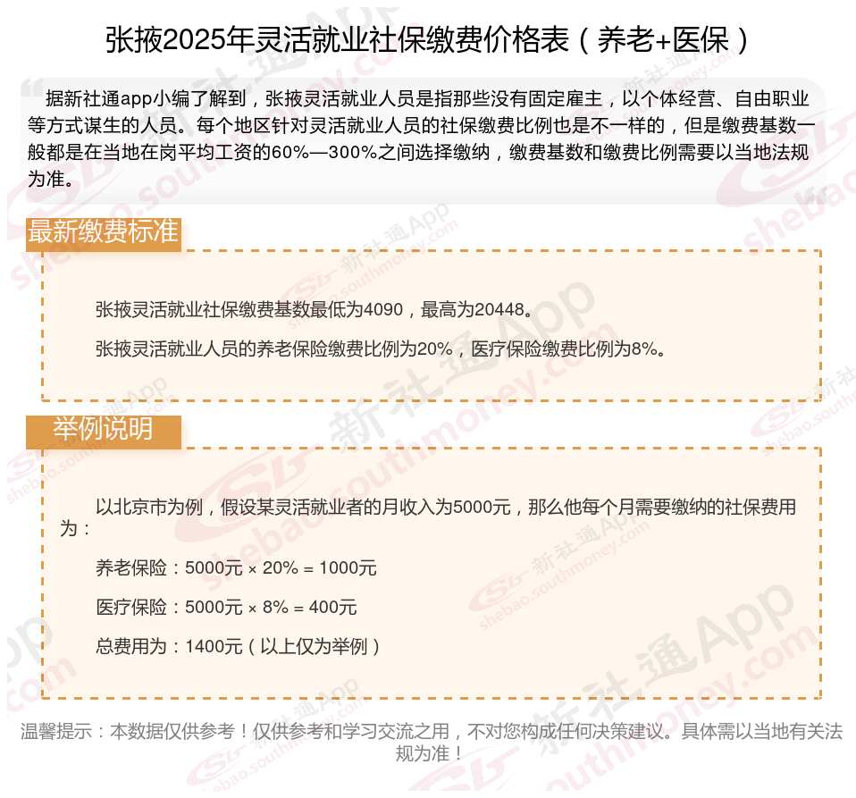 随着经济社会的不断发展,灵活就业群体日益壮大,其社保缴费问题也愈发受到关注。接下来随社保君了解一下2025年张掖灵活就业人员社保交多少钱的详细内容。