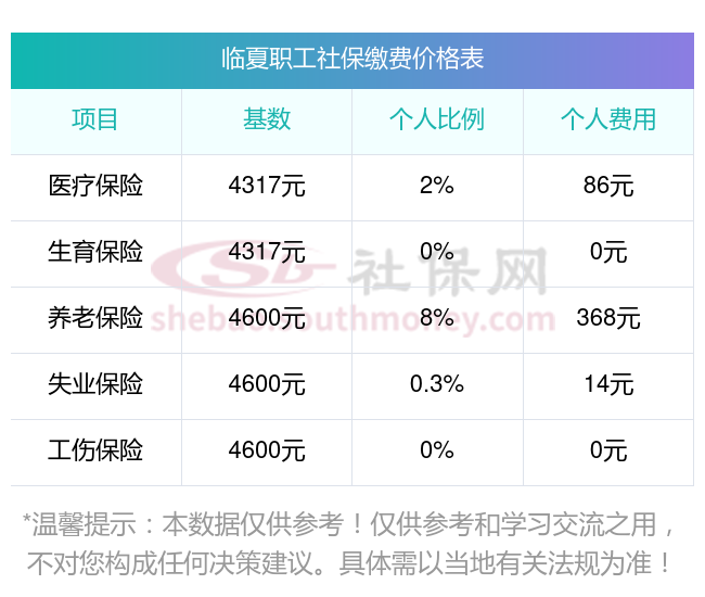 据新社通app显示,临夏社保缴费基数2025标准,(社保最低一个月要交多少钱)临夏社保费用如下: