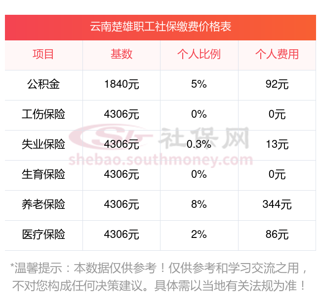 企业给员工交社保交多少钱一个月??云南楚雄五险一般扣多少钱??新社通app缴费查询工具提供的最新数据如下: