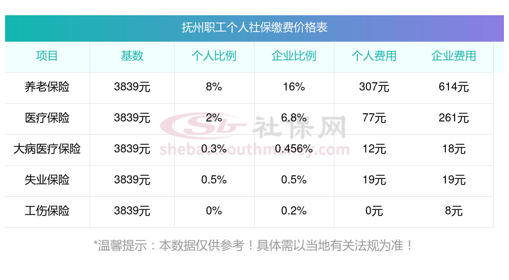 抚州缴费社保比例一览 社保公司和个人各交多少?下表是2024-2025年抚州社保费用明细参考,新社通app-社保缴费查询工具提供的最新数据如下: