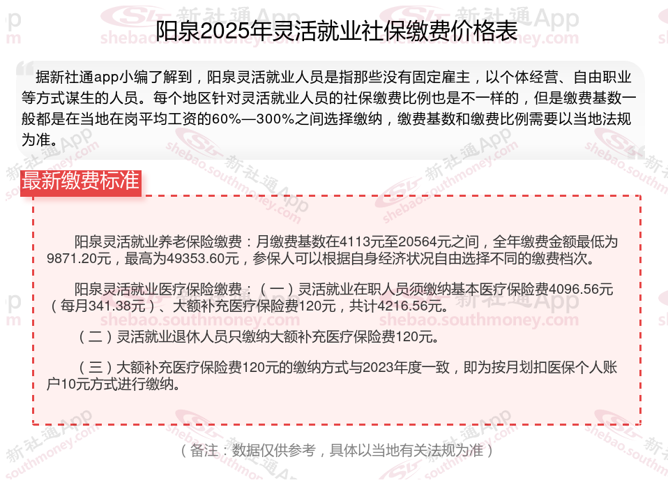 一、阳泉2024-2025年个体及灵活就业人员社保养老保险缴费标准(阳泉自费社保价格表)