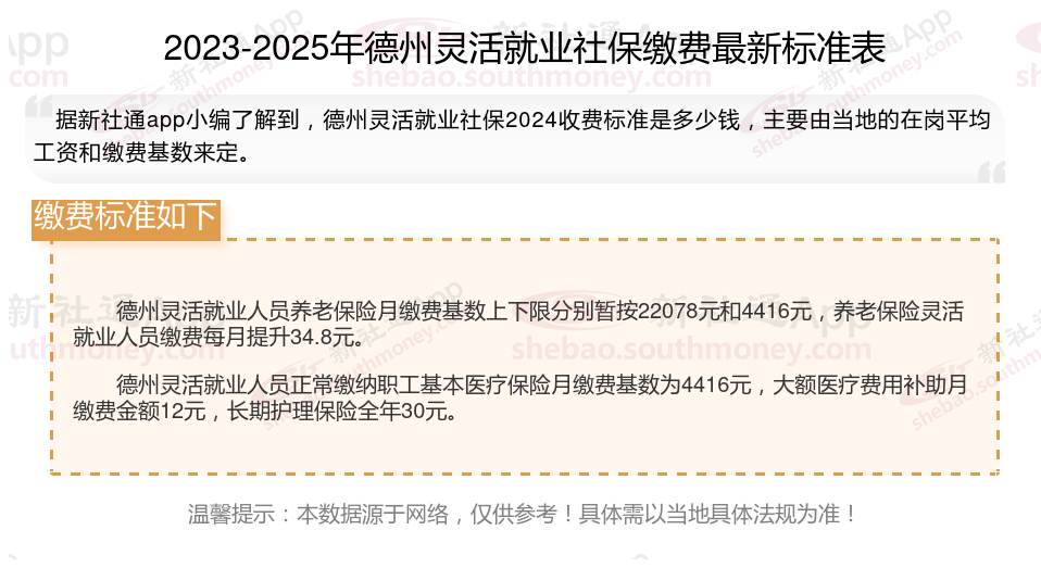 德州灵活就业社保交多少钱?最新德州灵活就业人员社保养老缴费标准明细来了,根据新社通app-社保缴费查询工具提供的2025社保缴费标准详情数据: