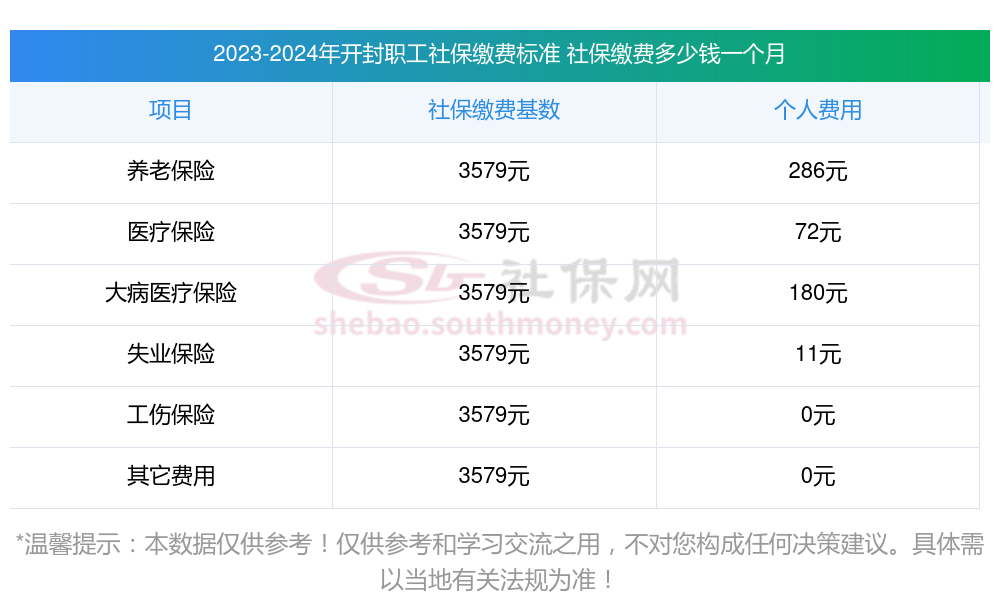 2025年开封社保缴费多少钱?下表是2024-2025年开封社保费用明细参考,新社通app-社保缴费查询工具提供的最新数据如下: