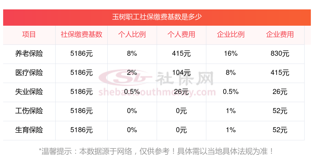 社保缴费价格表来了,看看你的玉树社保交多少钱一个月?需要提醒的,各地的社保缴费基数和比例是不一样的,因此,社保每年要交多少钱也是因地而异的。