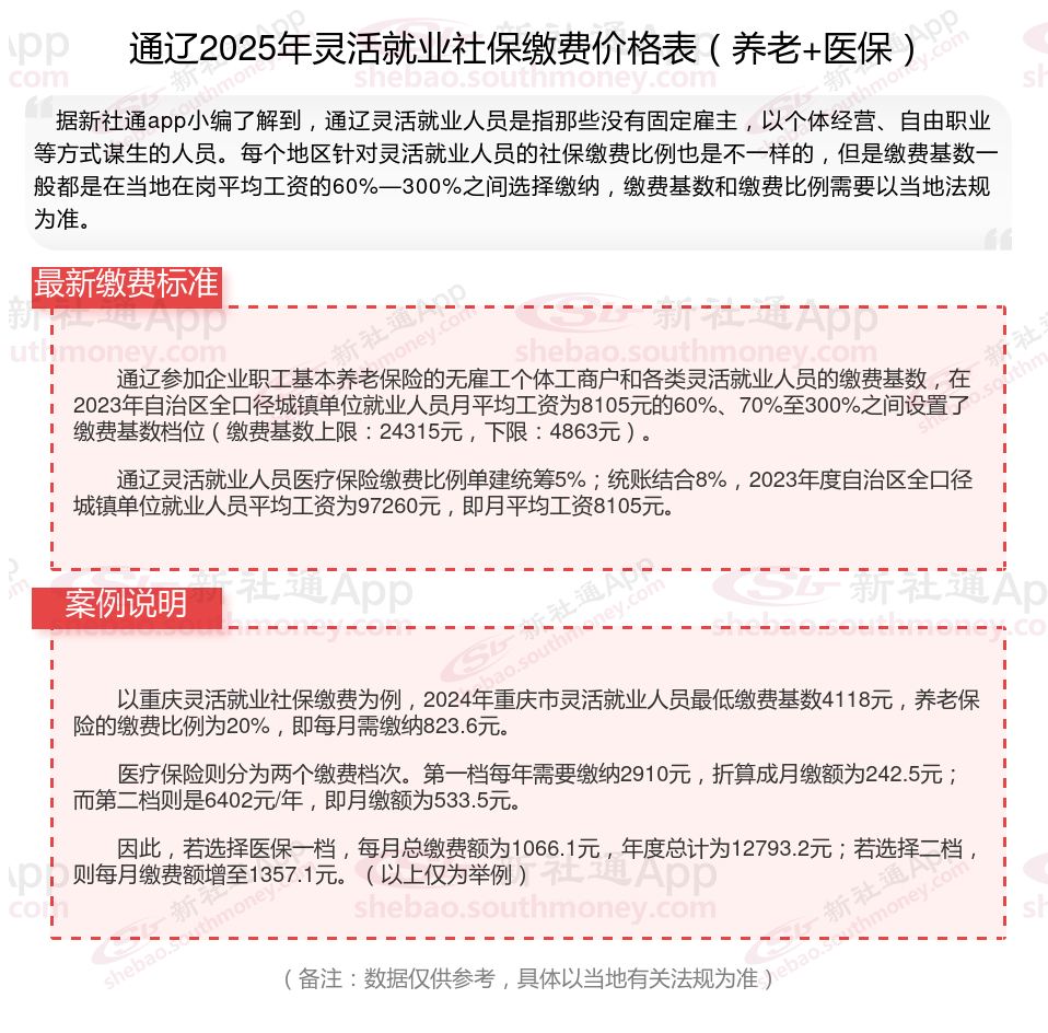 通辽灵活就业人员基本养老保险缴费基数暂按不低于4863元;