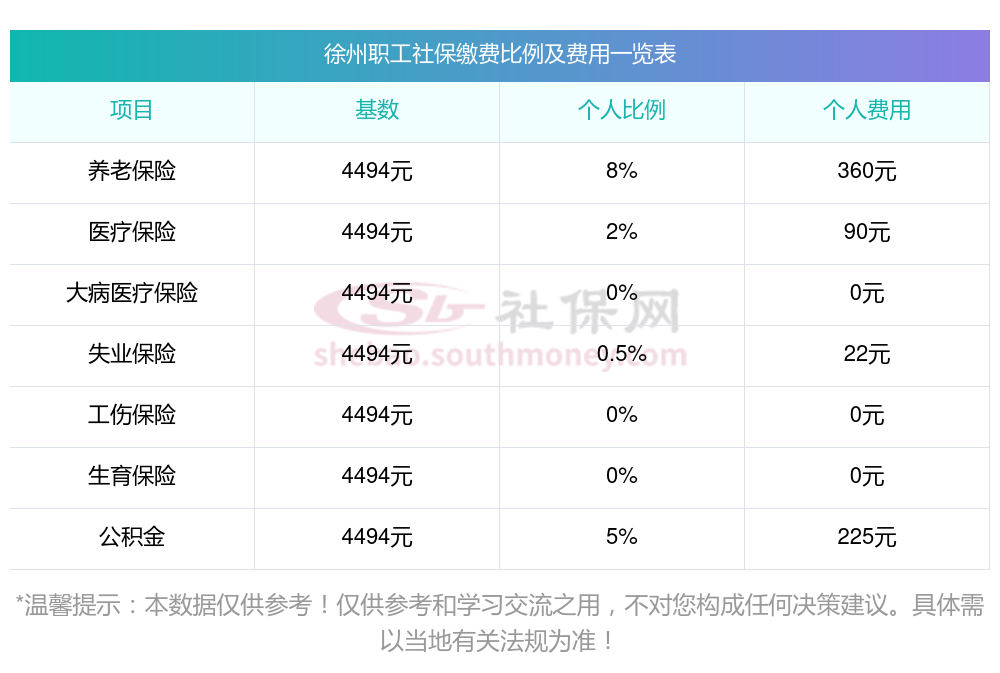和社保丫丫一起来了解下:徐州社保缴费比例是多少?2024-2025年徐州社保费用明细参考,新社通app-社保缴费查询工具提供的最新数据如下: