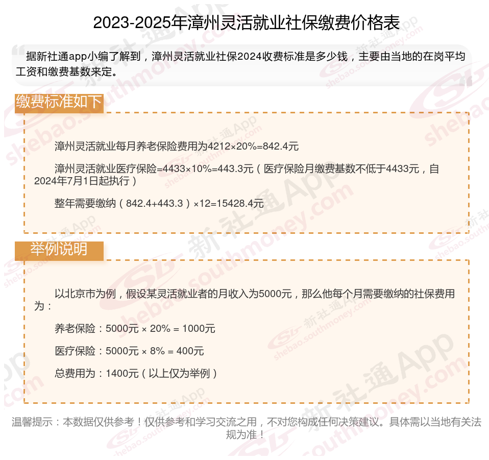 漳州灵活就业社保交多少钱?最新漳州灵活就业人员社保养老缴费标准明细来了,根据新社通app-社保缴费查询工具提供的2025社保缴费标准详情数据: