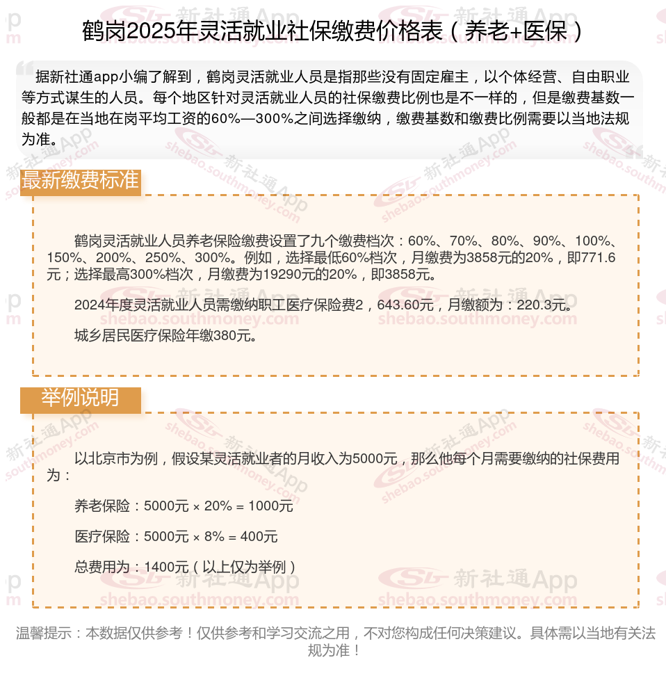 以上就是鹤岗灵活就业社保缴费的全部内容,数据及内容供参考!希望对你有帮助,欢迎关注新社通app解锁更多社保专业资讯。