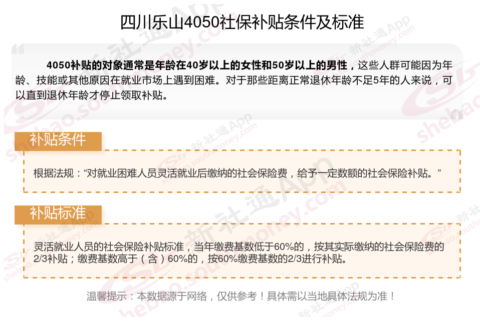 二、四川乐山4050社保补贴标准及条件2025年最新消息