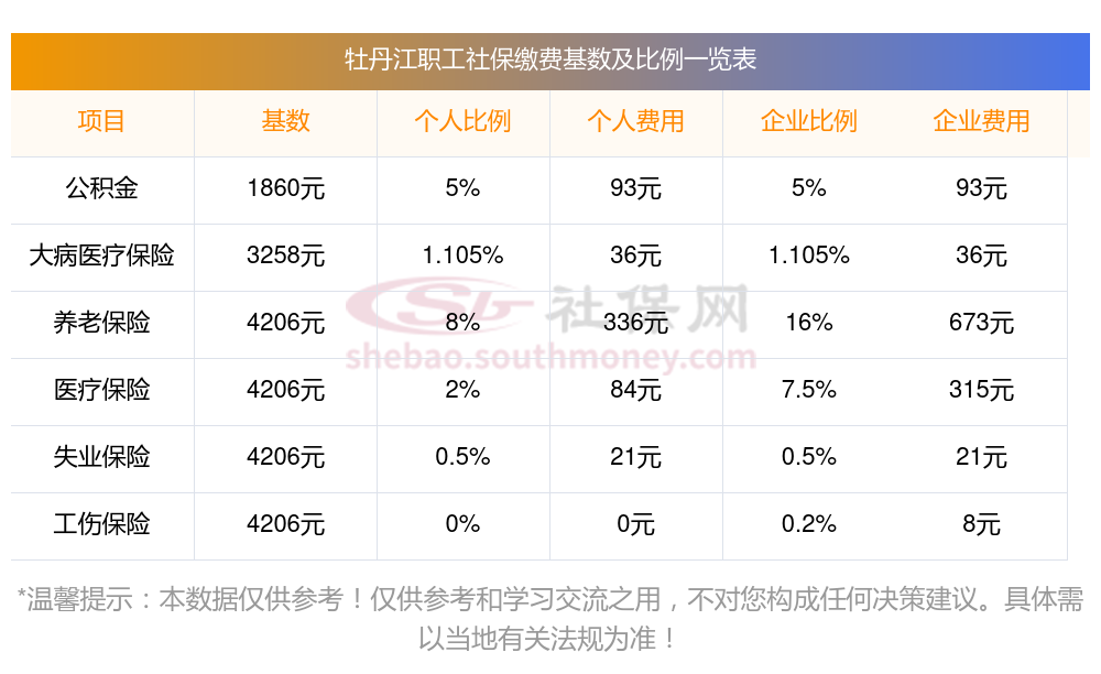 2025年牡丹江职工社保缴费基数是多少钱一个月?职工社保缴纳标准是多少?