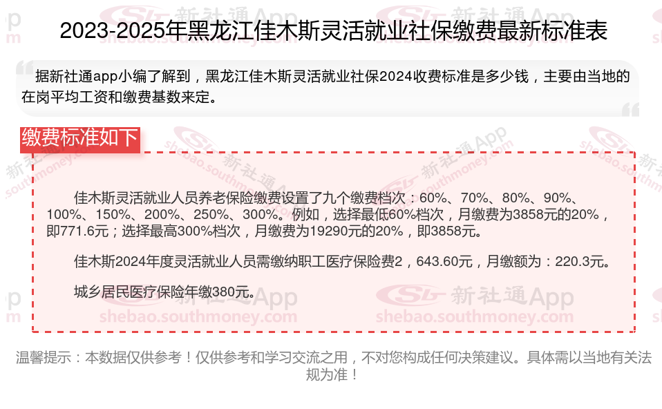黑龙江佳木斯灵活就业社保多少钱一个月?