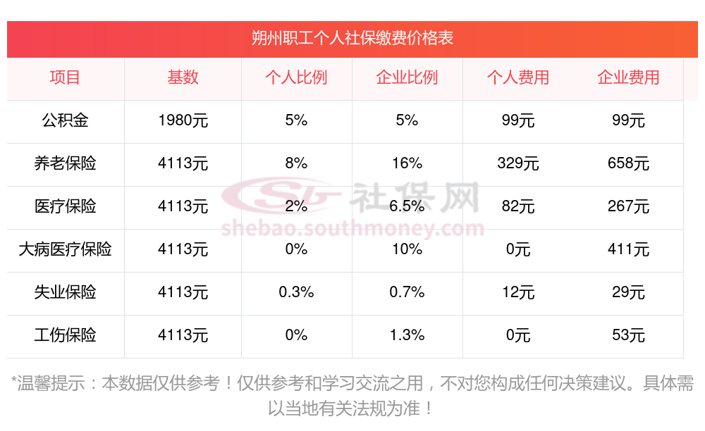 2025年朔州社保缴费标准 2025年朔州社保缴费多少钱一个月??下表是2024-2025年朔州社保费用明细参考,新社通app-社保缴费查询工具提供的最新数据如下: