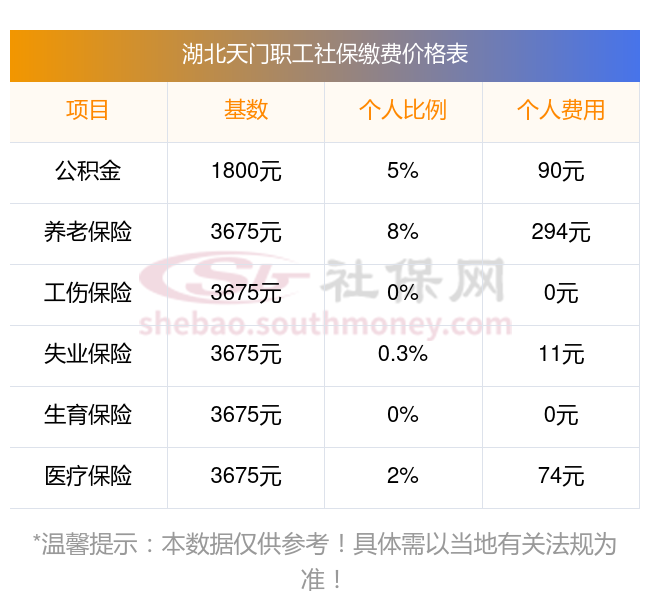 据新社通app显示,湖北天门社保缴费基数2025最新消息,2025年湖北天门职工社保缴费详情如下: