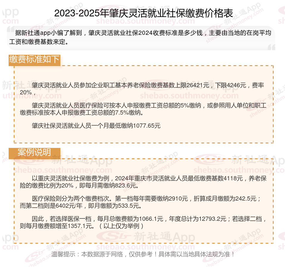 据新社通app数据显示,肇庆灵活就业人员养老保险缴费基数2024-2025年最新标准如下: