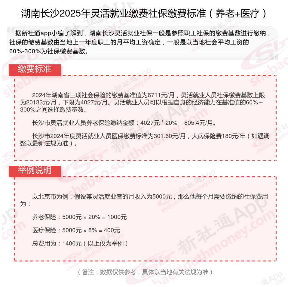 湖南长沙灵活就业人员社保每月交多少钱?根据新社通app-社保缴费查询工具提供的最新数据如下: