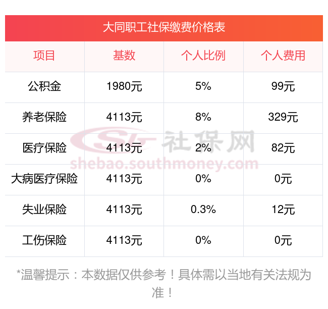 一、大同2025年社保缴费基数公布!2025年大同社保个人最低交多少钱一个月?