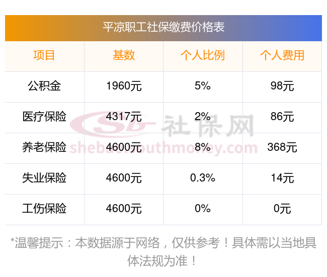 据新社通app小编了解,平凉社保缴费基数参照为3579.00,平凉社保最低一个月要交多少钱?如下: