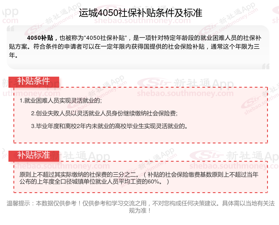 二、2025年运城4050社保补贴标准是多少?条件是什么?