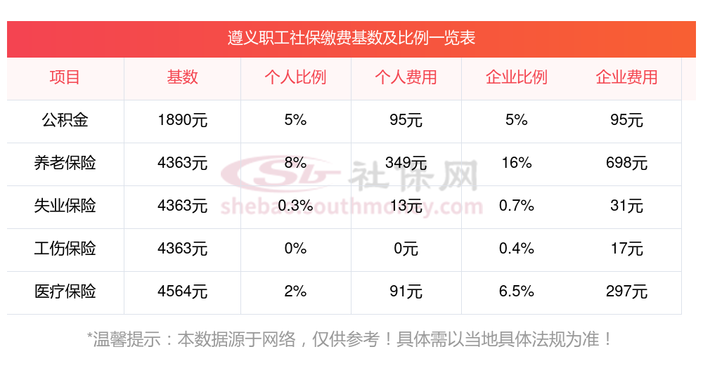 遵义社保最低基数2025是多少,下表是2024-2025年遵义社保费用明细参考,新社通app-社保缴费查询工具提供的最新数据如下: