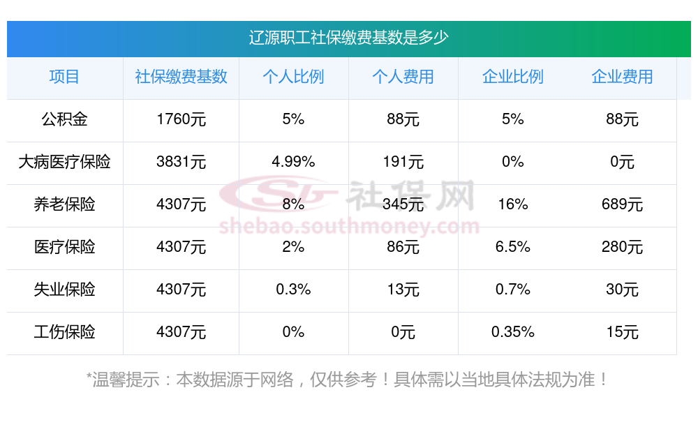 2025年辽源社保缴费价格表最新消息?辽源社保交多少钱一个月?下表是2024-2025年辽源社保费用明细参考,新社通app-社保缴费查询工具提供的最新数据如下: