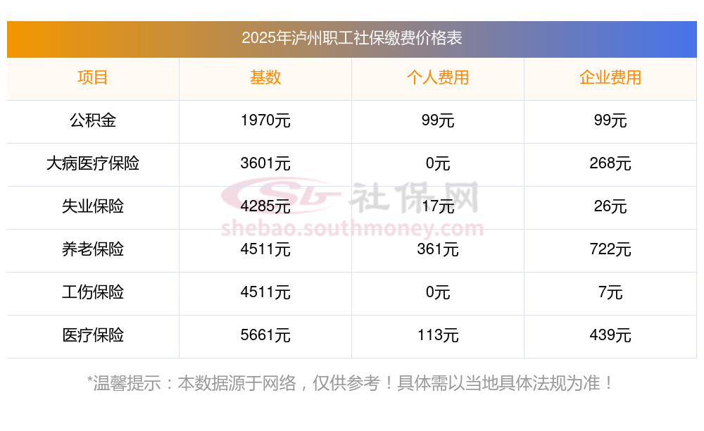二、2025年泸州职工和公司社保各交多少钱?职工社保缴费多少钱一个月?