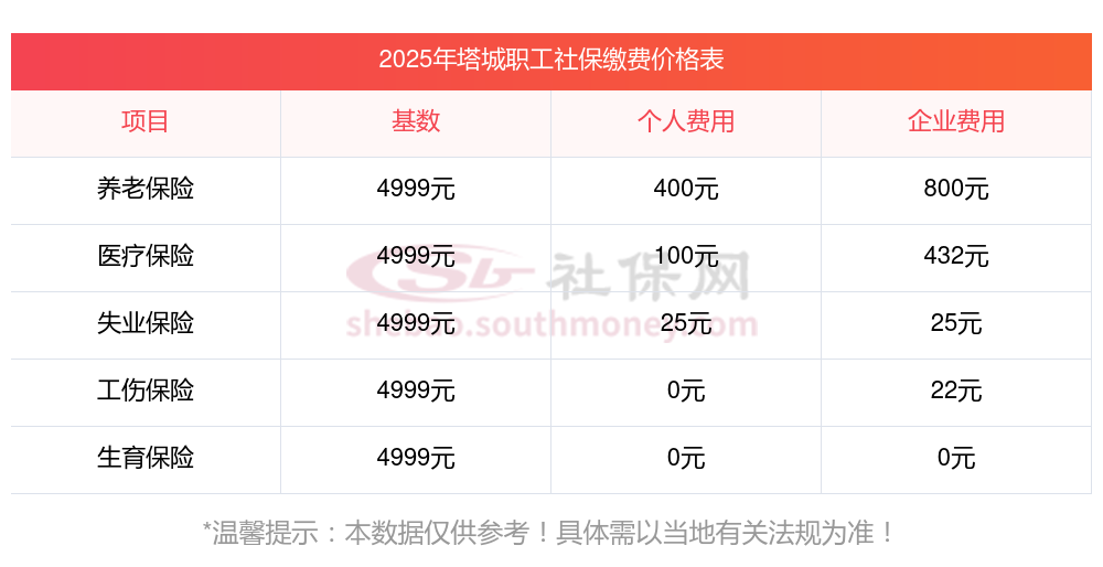 以下是对塔城2025年社保缴费情况的另一个详细说明,基于最新的缴费标准:
