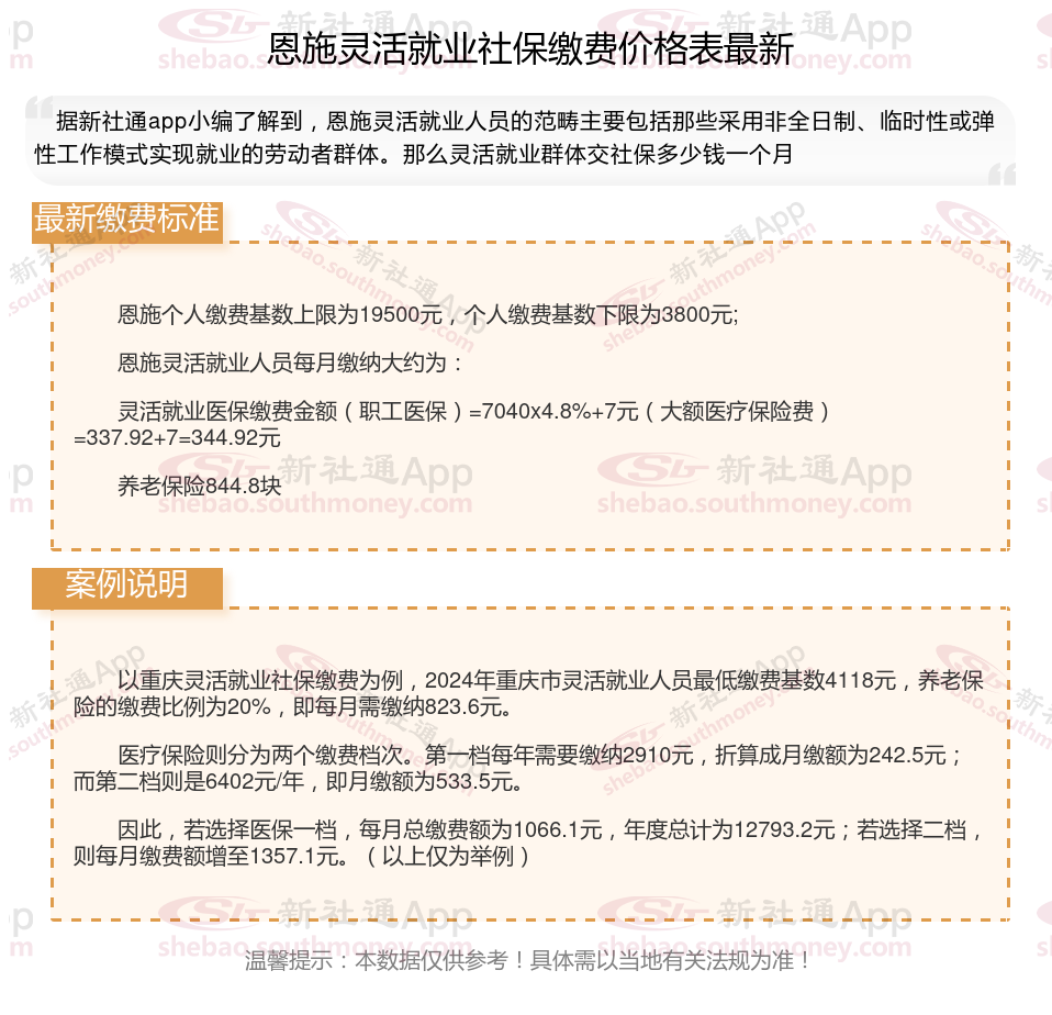 恩施灵活就业人员基本养老保险缴费基数暂按不低于3800元;