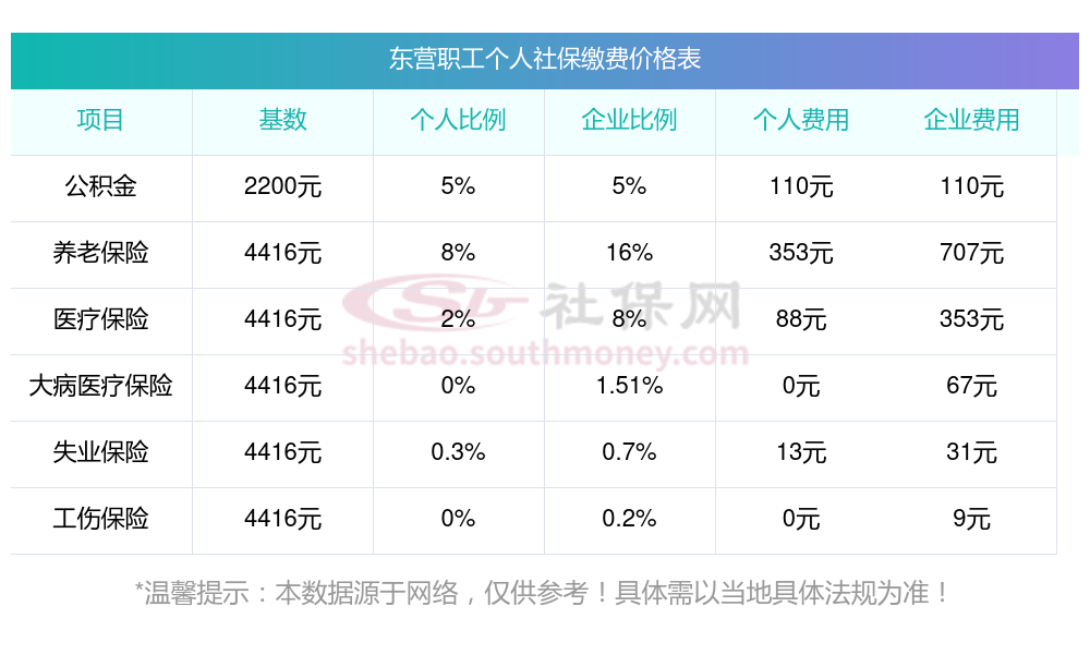 据新社通app显示,东营社保缴费基数2025标准,(社保最低一个月要交多少钱)东营社保费用如下:
