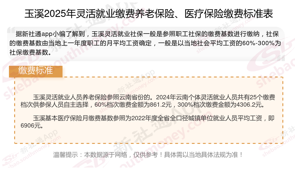 以上就是玉溪灵活就业社保缴费的全部内容,数据及内容供参考!希望对你有帮助,欢迎关注新社通app解锁更多社保专业资讯。